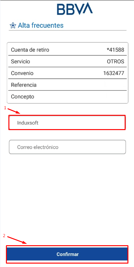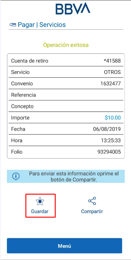 Para poder tener un acceso mas rápido y fácil, guarde la información como una cuenta frecuente.
